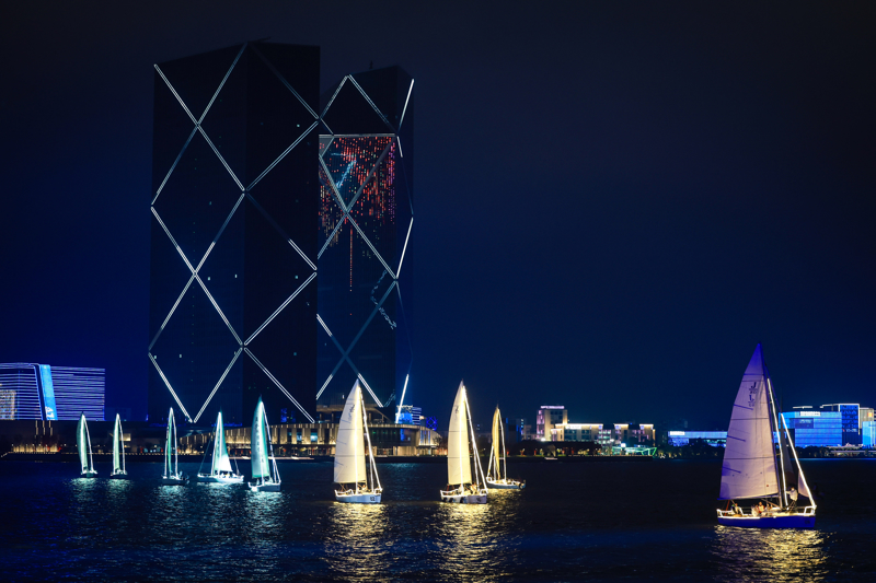 4月15日晚,2026上海风帆公开赛在临港滴水湖畔开赛。