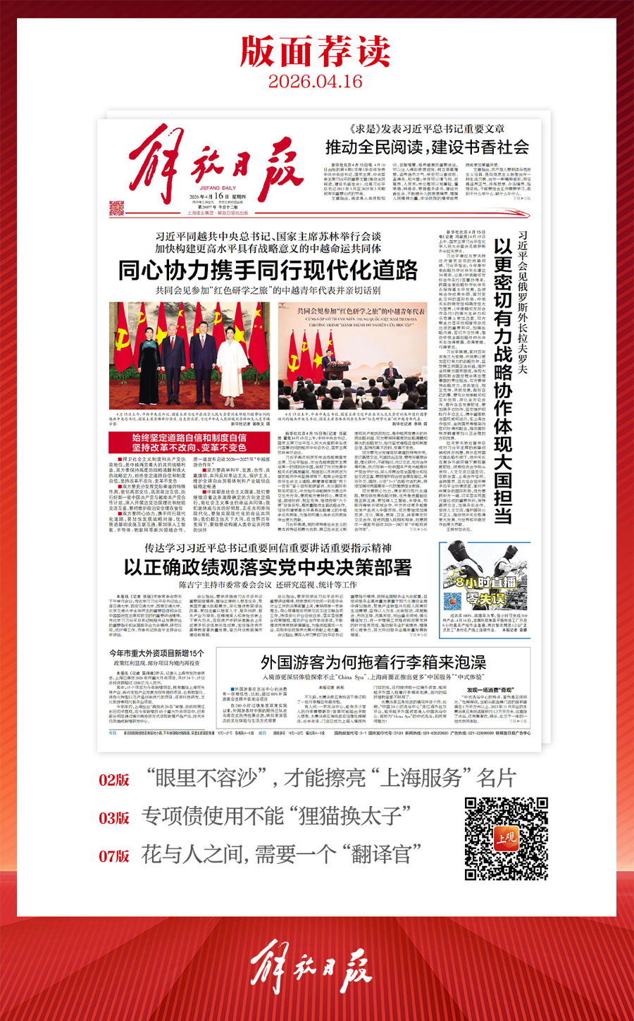 早上好!上不雅新闻『早读』来啦!今天是2026年4月16日星期四,农历二月廿九。