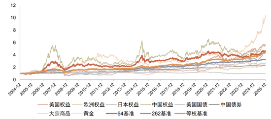 注:64与262基准构建均使用国内资产类别,仅供参考;统计时间为2004/12/31-2025/12/31