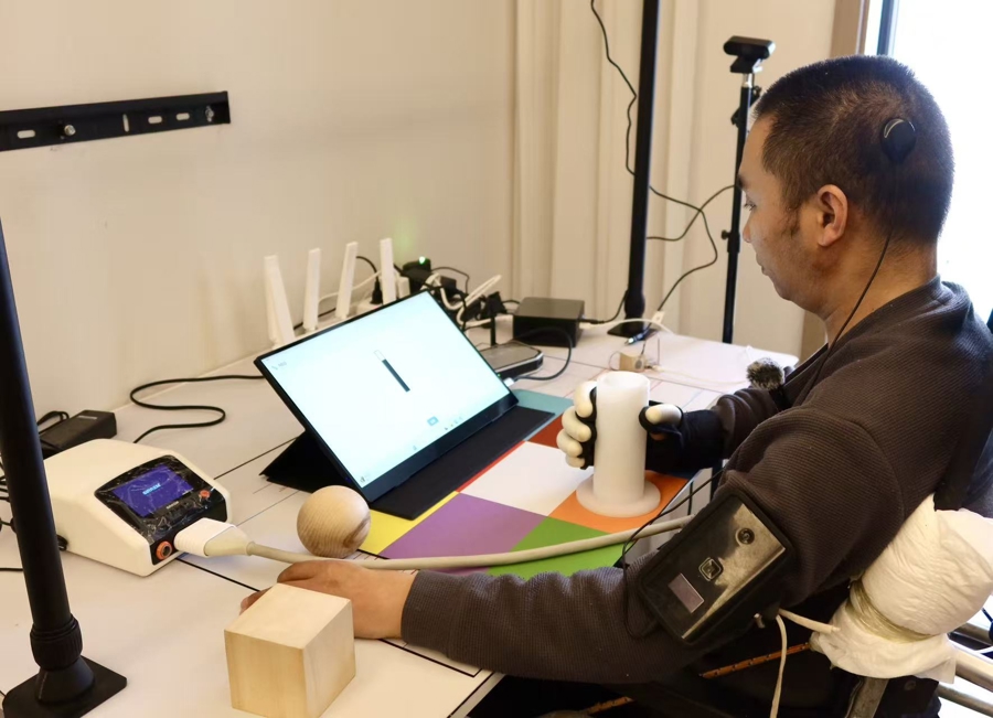 受试者在植入脑机接口后,经过西宾,上肢功能不断规复。(受访者供图)