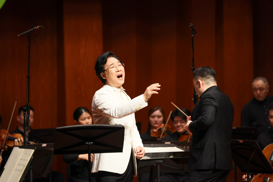 上海音乐学院院长、有名男中音陈赞家廖昌永身着一袭白色西装登台,联袂后生开采家张橹与上音独奏家室内乐团,联袂顾文梦、张曦、张功浩、乌列热四位获奖后生学子,以19首逾越世纪的经典之作,为不雅众献上一场诗意盎然、底蕴深厚的音乐盛宴。当返场曲目《我和我的故国》唱毕,全场掌声雷动,久久握住。