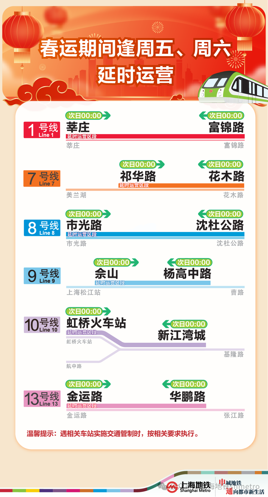 为满足春运期间乘客夜间出行需求,缓解中心城区夜高峰休闲、购物客流密集的压力,短线炒股配资最大限度地满足乘客节日出行需求,逢周五、周六,地铁1、7、8、9、10、13号线将继续执行常态周末延时运营方案。