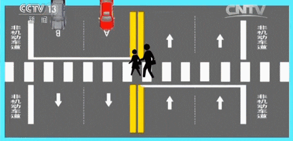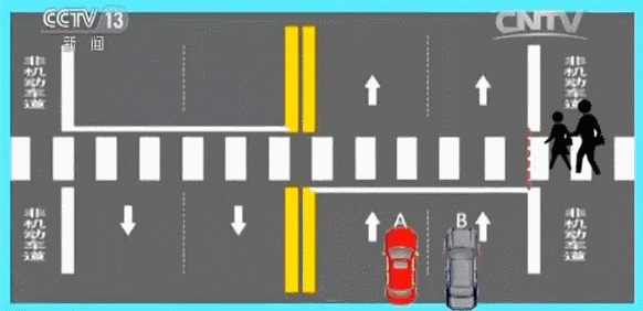 2.行东说念主在纯真车说念、非纯真车说念离别线外侧恭候、未干涉纯真车说念,纯真车A、B应当减慢行驶,可在确保安全前提下通过东说念主行横说念。