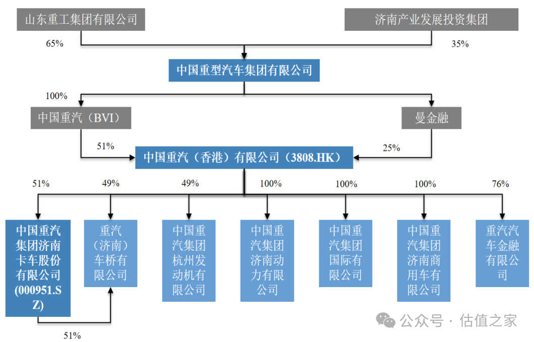 图片评释:中国重汽H股与A股股权关系,数据来源于开源证券