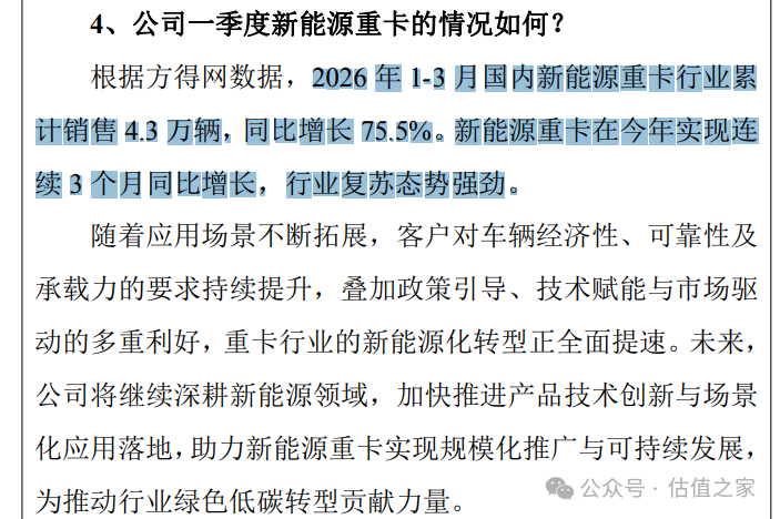 第二个超预期的是新动力重卡数据。证实第一商用车网的数据,2026年3月宇宙共新增新动力重卡1.55万辆,同比增长41%。证实中国重汽A股4月9日公告的《投资者关系步履纪录表》,2026Q1累计销售4.3万辆,同比增长75.5%,贯穿三个月同比增长,复苏态势强劲。