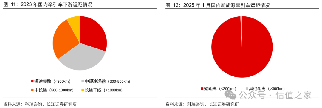 图片评释:中东乱局前,新动力重卡的主要欺诈场景是小于300公里的短途散运,数据来源于长江证券