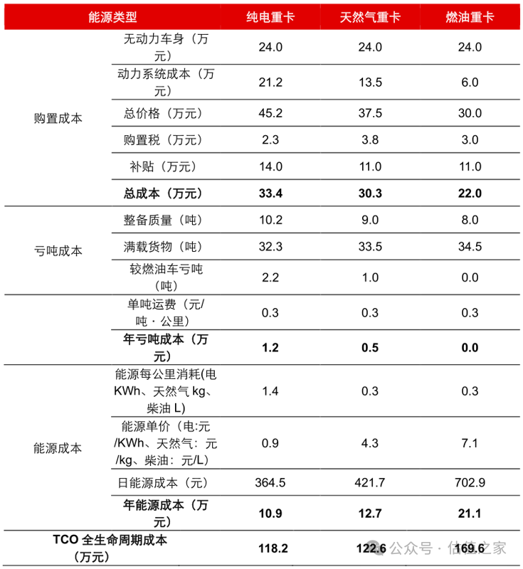 证实长江证券测算,对比新动力重卡与传统燃油重卡从全生命周期的总老本,按照每天300公里、每年运营300天进行蓄意,纯电新动力重卡运营7年总用度为118.2万元,比燃油重卡低51.4万元。