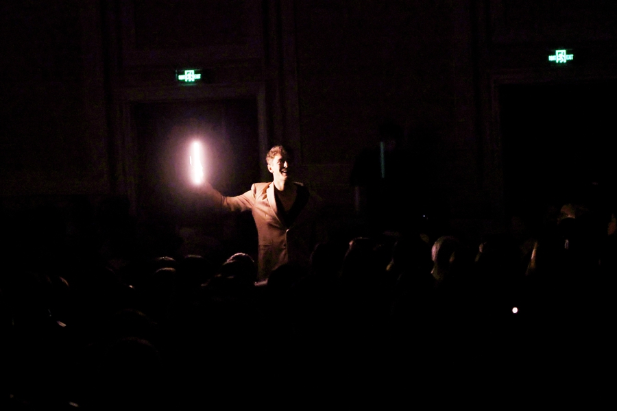 奥尔林斯基从舞台上跳下,与不雅众互动。